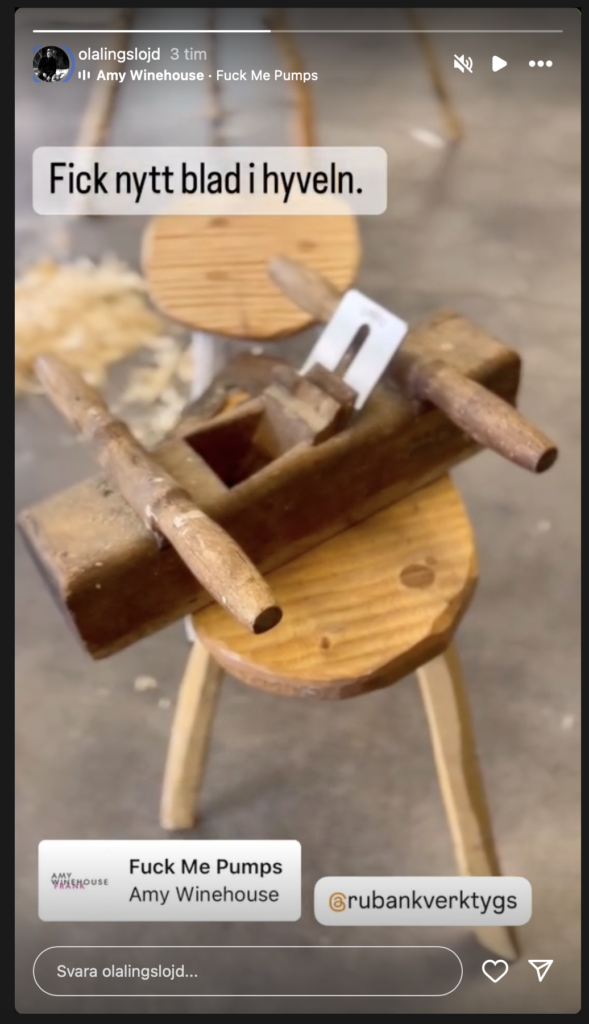 Vi har länge pratat om att vi skulle vilja se vad ni gör med sakerna ni köper från oss. Vi är rätt säkra på att det är många av er som lägger upp på olika sociala medier och det skulle vara skoj att se det. Det finns ofta en möjlighet att ”tagga” oss, när man lägger upp inlägget, typ #rubankverktygs, @rubankverktygs eller liknande. Då får vi en pling om att någon taggat oss och vi brukar kunna se det. Tänk bara på att så kallade händelser bara är synliga i 24h, så vi kanske inte hinner se det, vanliga inlägg kan vi ju titta på även senare. Senaste taggaren är Ola Ling (@olalingslojd) som la upp detta i ett inlägg och en händelse. Vi bugar och bockar för taggen Ola!