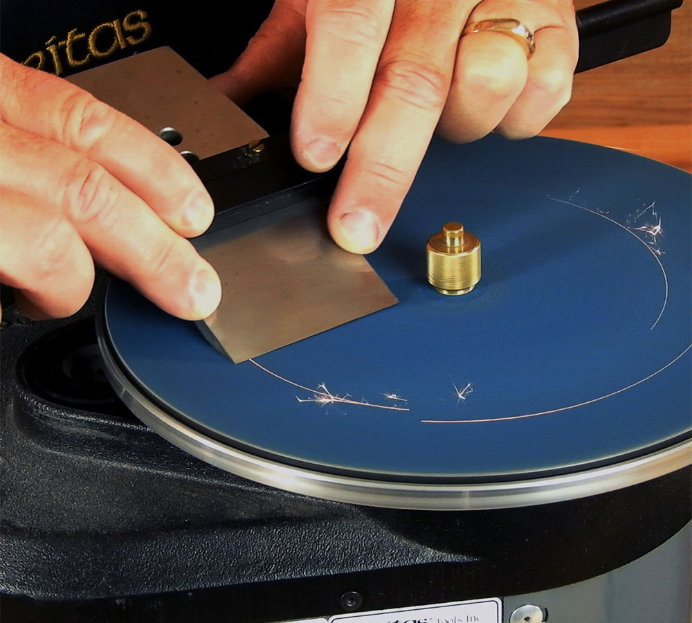Det tredje och sista steget är att etablera eggen. Slipningen kan göras på fri hand eller med hjälp av en slipguide. Slipning på fri hand går visserligen snabbare, men kräver regelbunden användning och övning för att bibehålla det muskelminne som krävs för att få optimala resultat. Vi rekommenderar starkt att du använder en slipguide för att uppnå konsekventa och repeterbara resultat.
